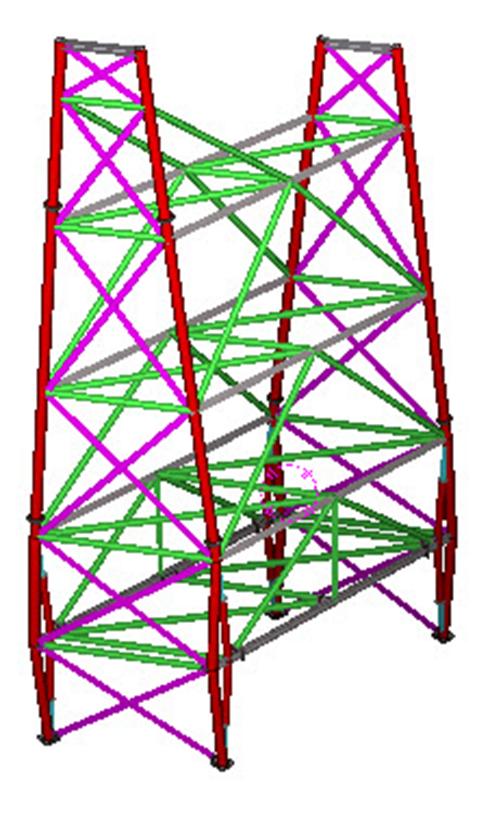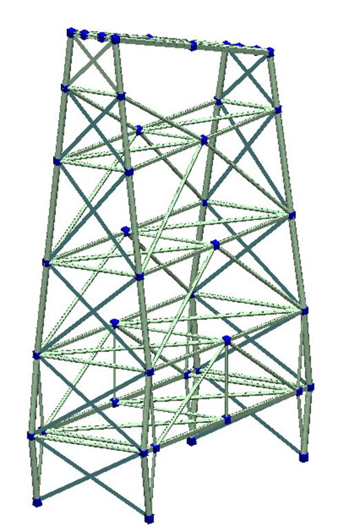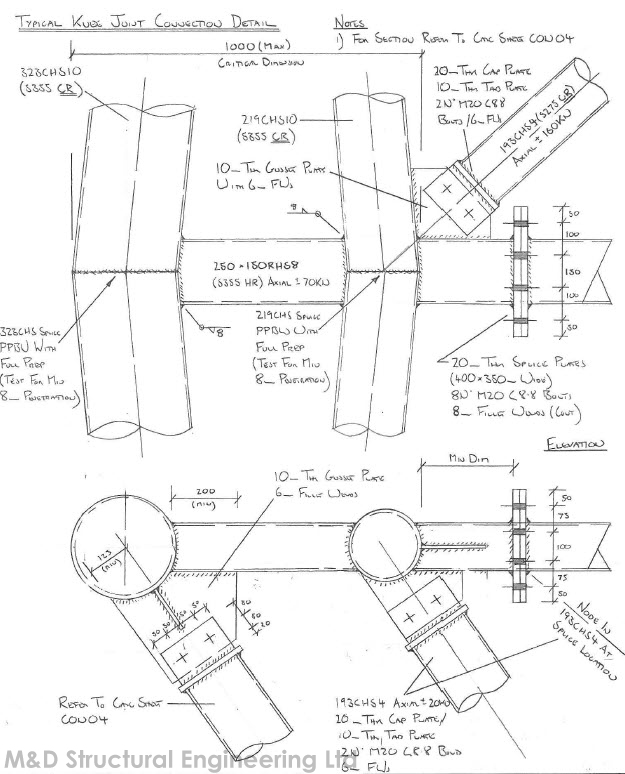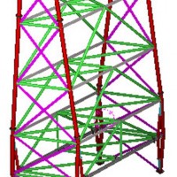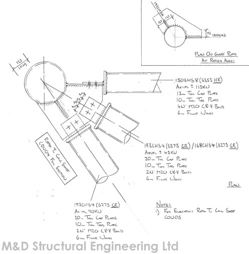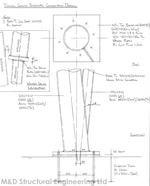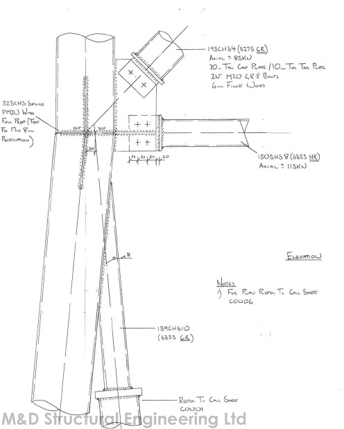 A 30m high conveyor support trestle at the Tarmac plant in Hayes, Middlesex. The structure was constructed using complex multi planar welded and bolted tubular connections.
